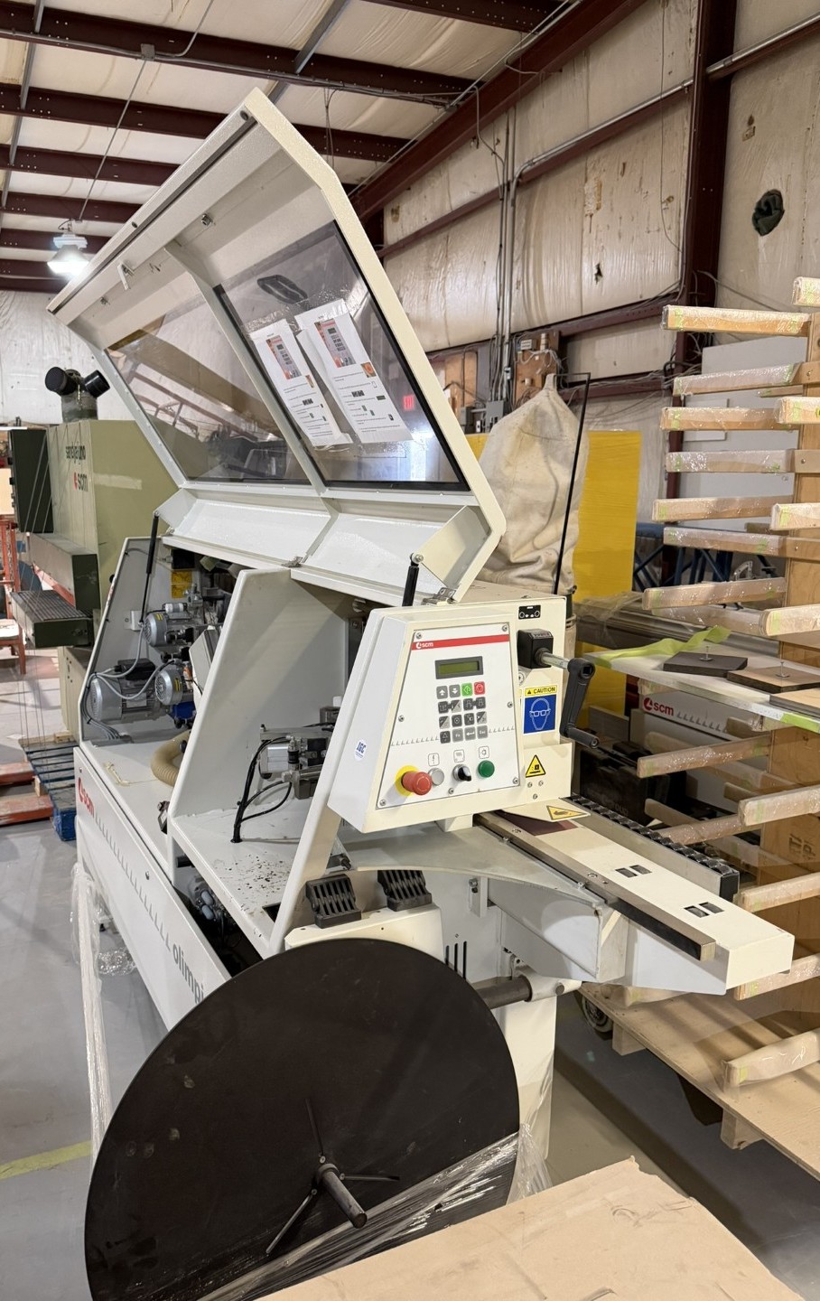 | Machine Capacities: | 0.4-3mm Capable 9m/min Feeding Speed Hot Melt Glue Pot Twin End Trim Saws Top & Bottom Trimming Radius Scraping Station Buffing Station Compact Italian Hot Melt Edgebander, Panel Thickness; 8 - 50mm Edge thickness; 0.4 - 3mm Minimum Panel length; 140mm Feed Speed; 9m/min |