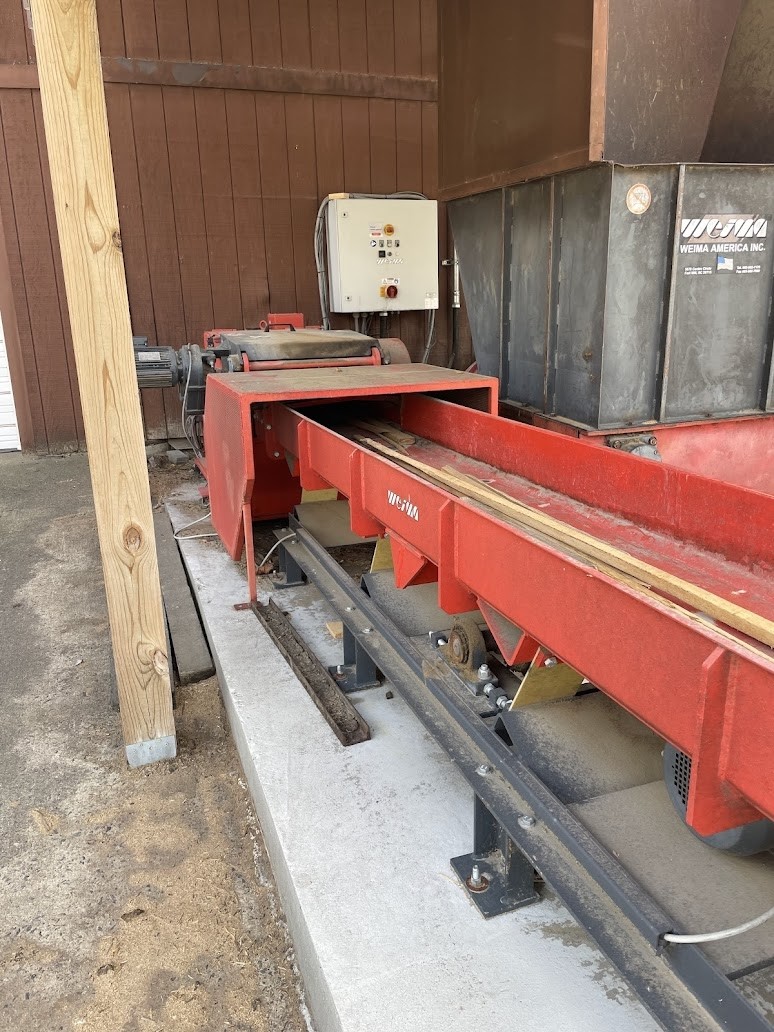 | Machine Capacities: | 2014 WEIMA Model Tiger 600 Horizontal Wood Shredder, Refurbished By WEIMA in 2019! Rotor Motor: 60 HP Material Opening: 6" x 23.6" 14" Diameter Rotor Currently w/ 1" Screen Replaceable Bolt-On Cutter Knives Includes 2019 WEIMA Vibro 600 Vibrating Feed Conveyor Includes Standalone Operator Control Cabinet 460v, 3ph Available Immediately! |